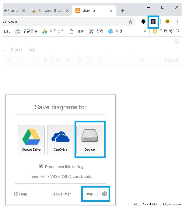 크롬 브라우저의 우측 상단에 설치된 다이어그램 플러그인을 클릭합니다.