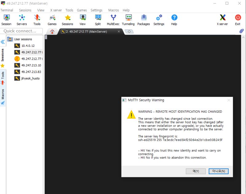 접속을 처음 하는 거라면 아래처럼 경고 메세지가 나온다.