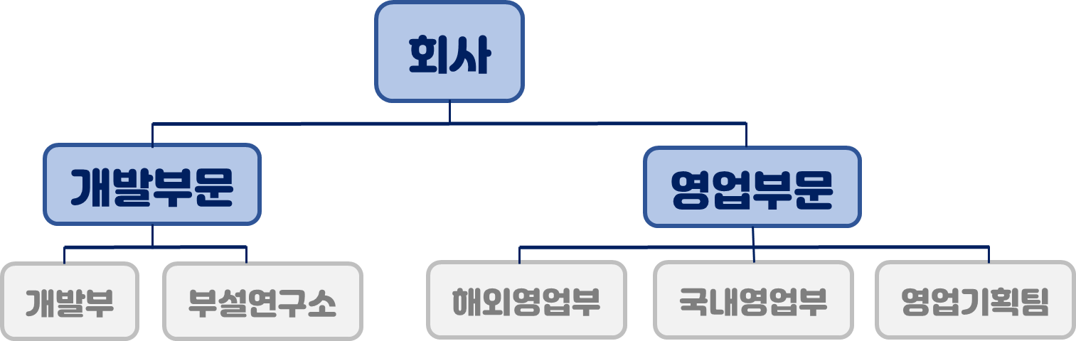 하위 : 해외영업부, 국내영업부, 영업기획팀